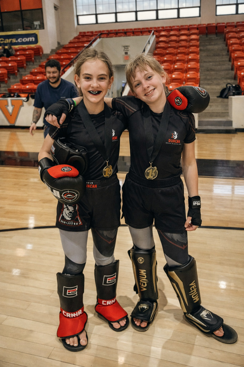 Gwendolyn Duncan is an assistant youth coach at Duncan MMA and plays an important role in helping guide the academy’s youngest students. She assists with the Little Ninjas program for ages 4–6, and also helps coach both the Kids Brazilian Jiu Jitsu and Youth Kickboxing classes. With years of experience training and competing, she brings patience, enthusiasm, and a strong technical foundation to the mat while helping younger students develop confidence and discipline.